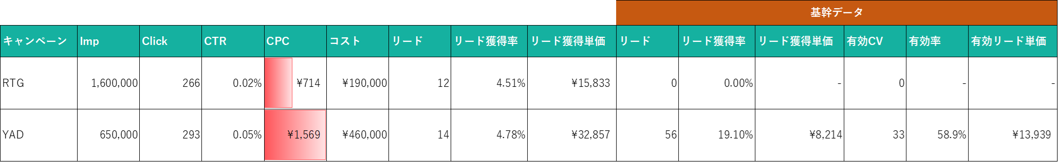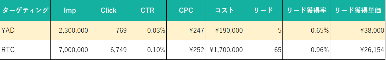 これは、YADのターゲティングが有効リードの条件に近いターゲティング(従業員規模や職種など)で、配信ユーザを絞り込むことができた、と考えられます。